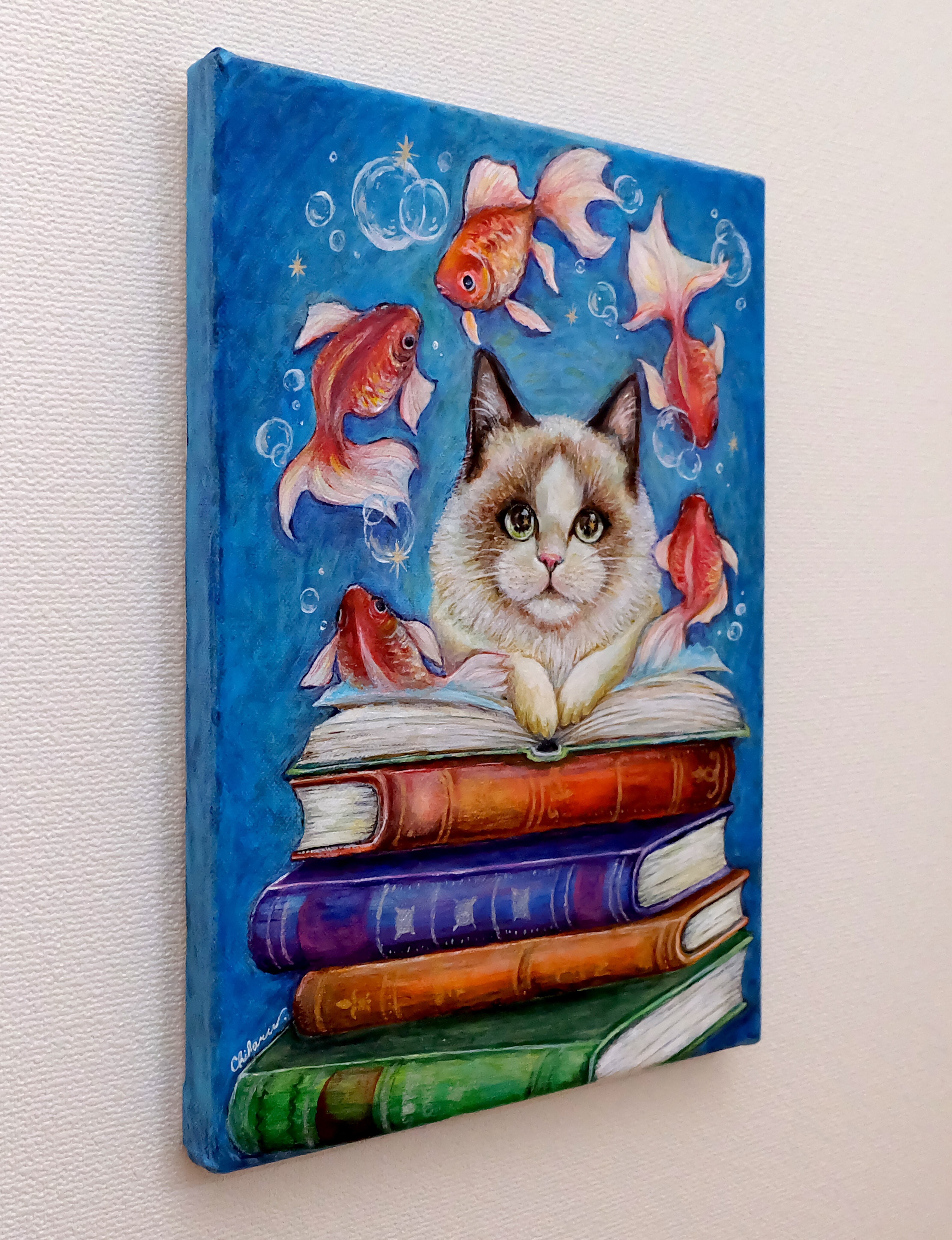 アクリル画、水彩画、デジタル画など色々な画材で描き、描き方も写実的な絵とゆるいオリジナルキャラクター「おこにゃん」と全く別の方が描いたのかと思わせるchiharuさん。