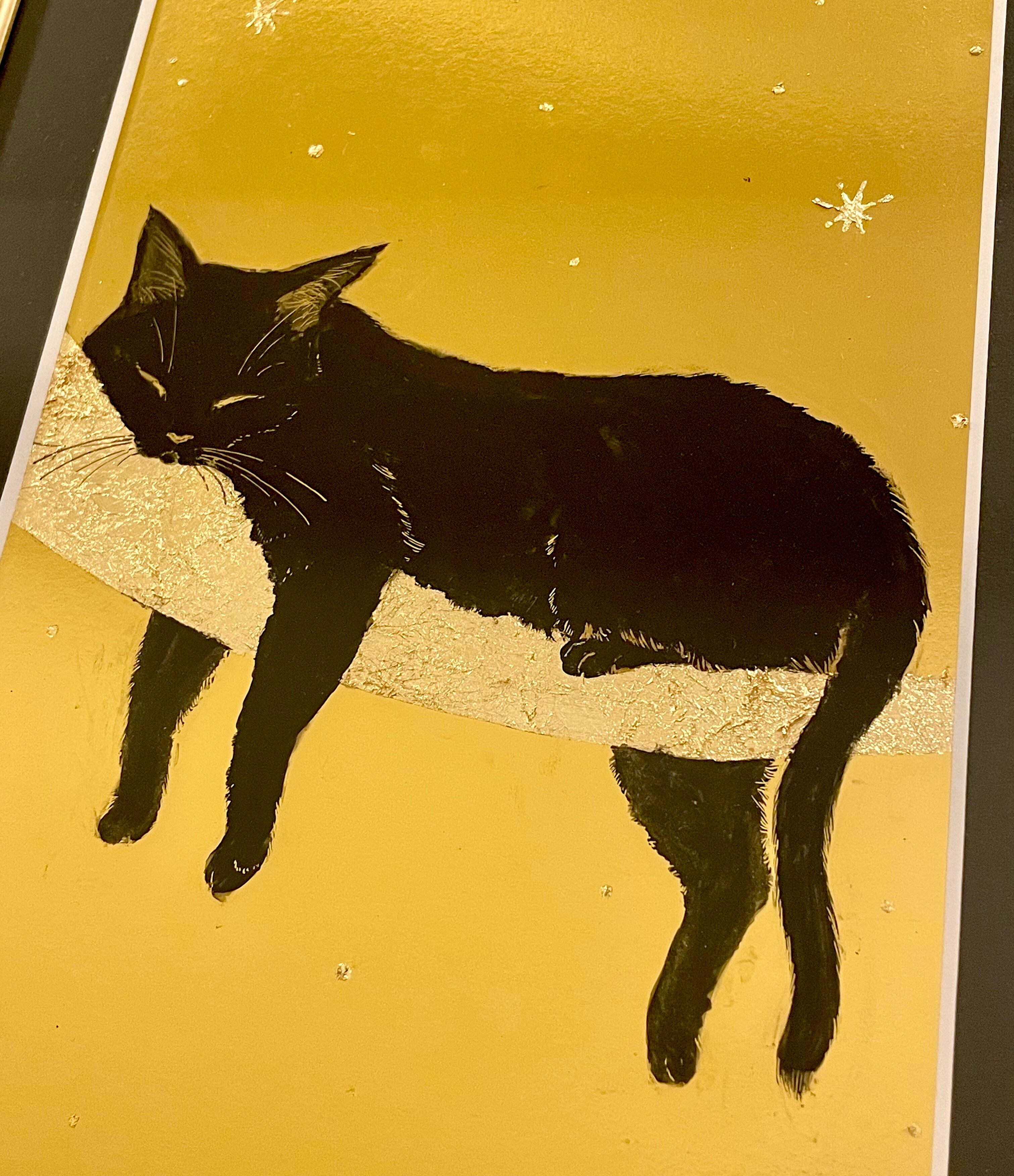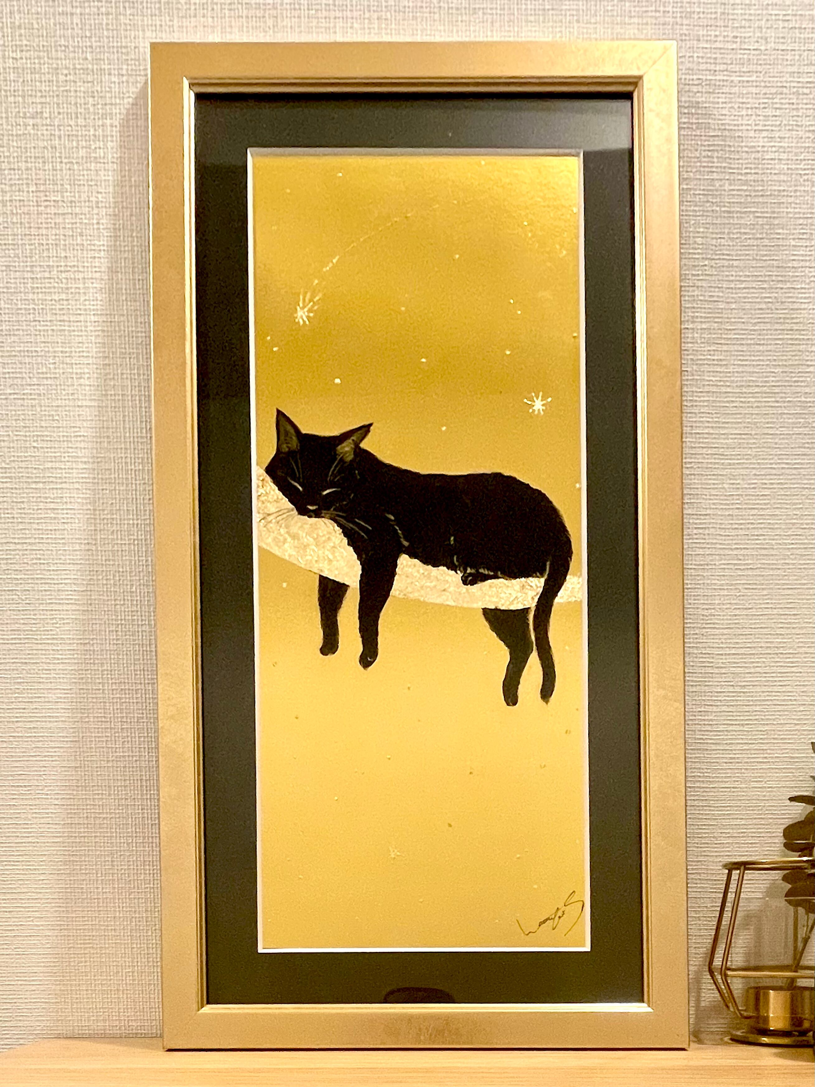 ゴールドシリーズと言われている金色の紙に黒の絵の具でを描く Natsuki Sumitani さんの