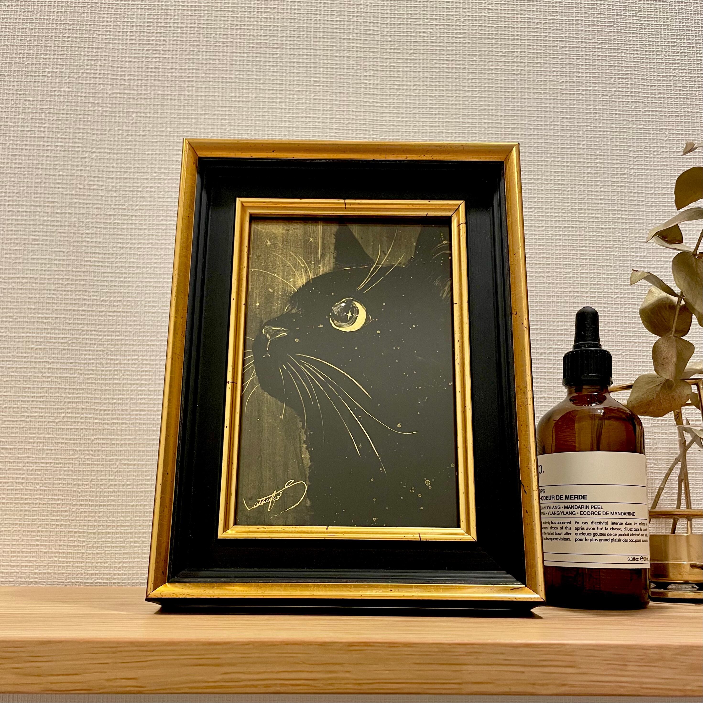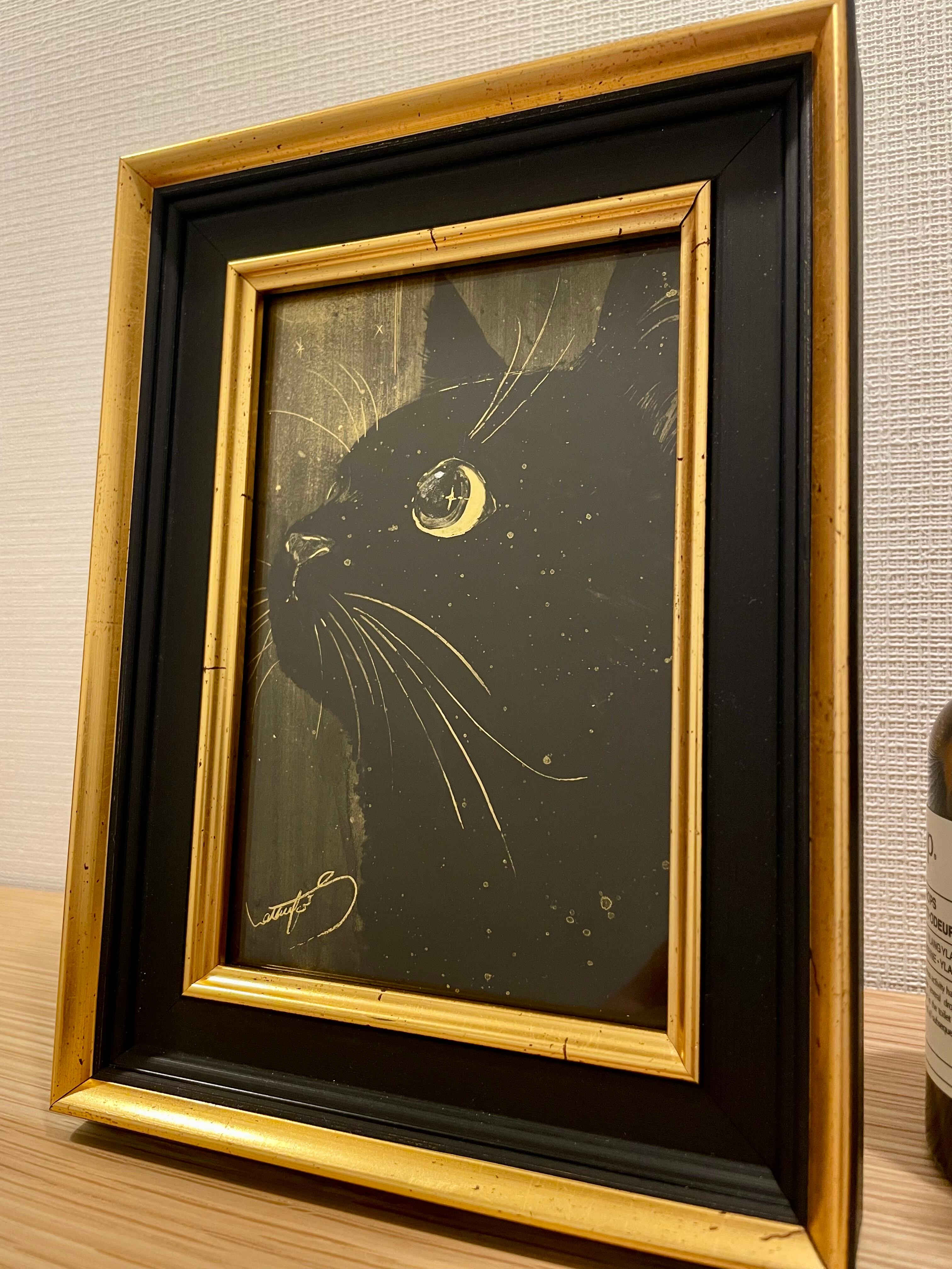 ゴールドシリーズと言われている金色の紙に黒の絵の具でを描く Natsuki Sumitani さんの