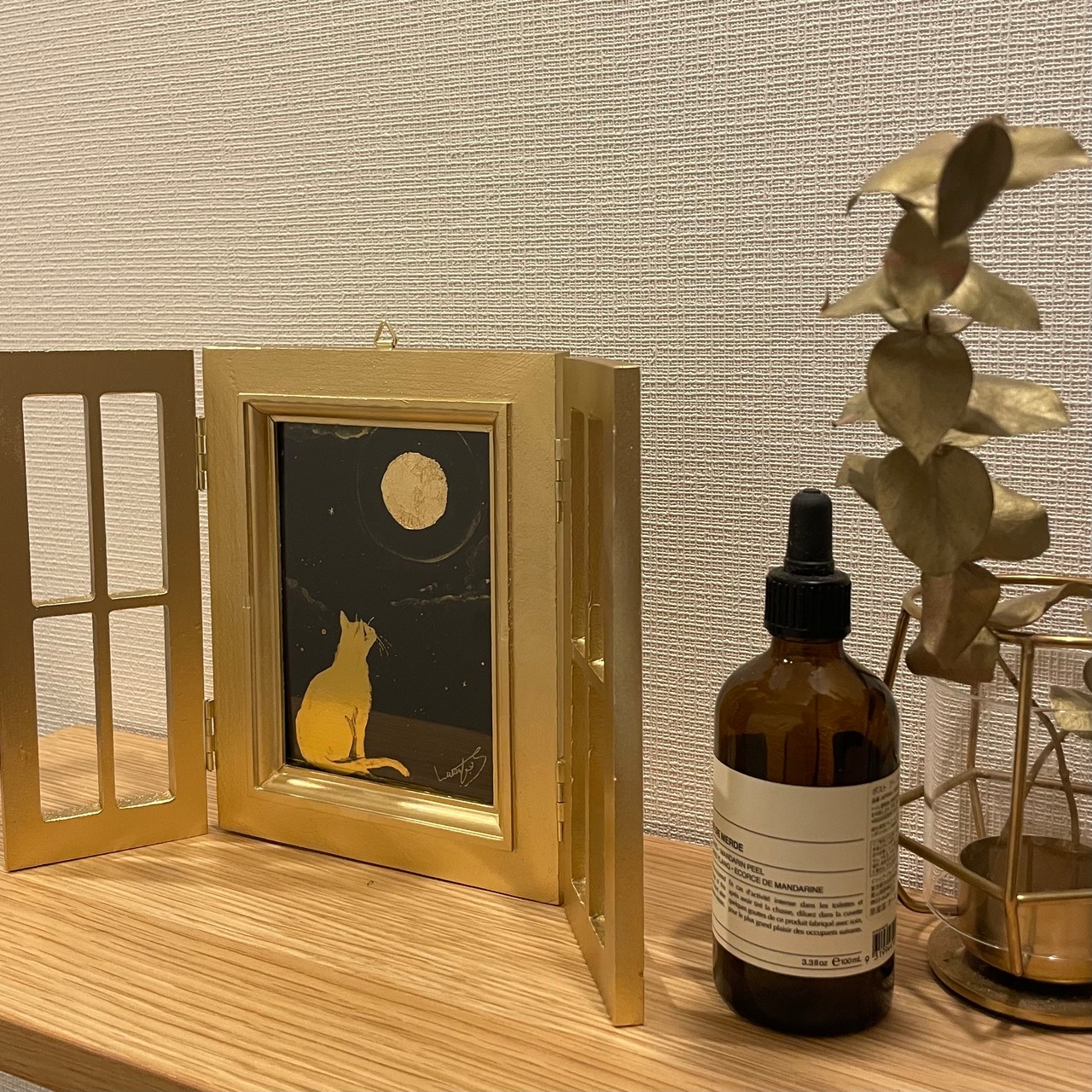 ゴールドシリーズと言われている金色の紙に黒の絵の具でを描く Natsuki Sumitani さんの