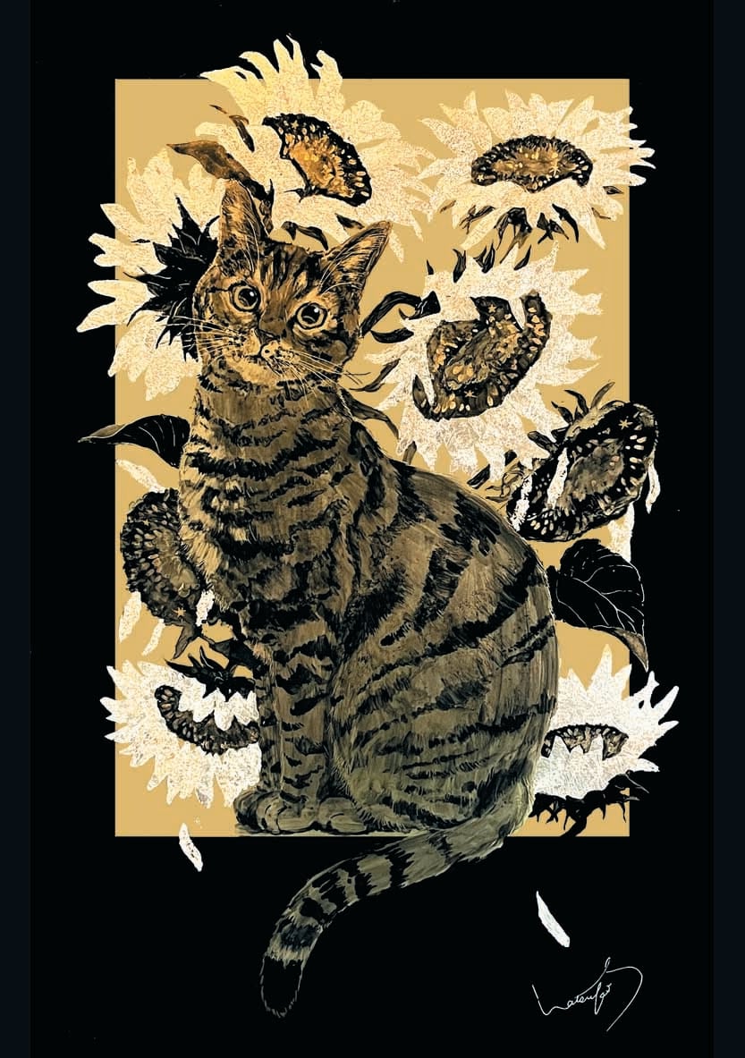 ゴールドシリーズと言われている金色の紙に黒の絵の具でを描く Natsuki Sumitani さんの