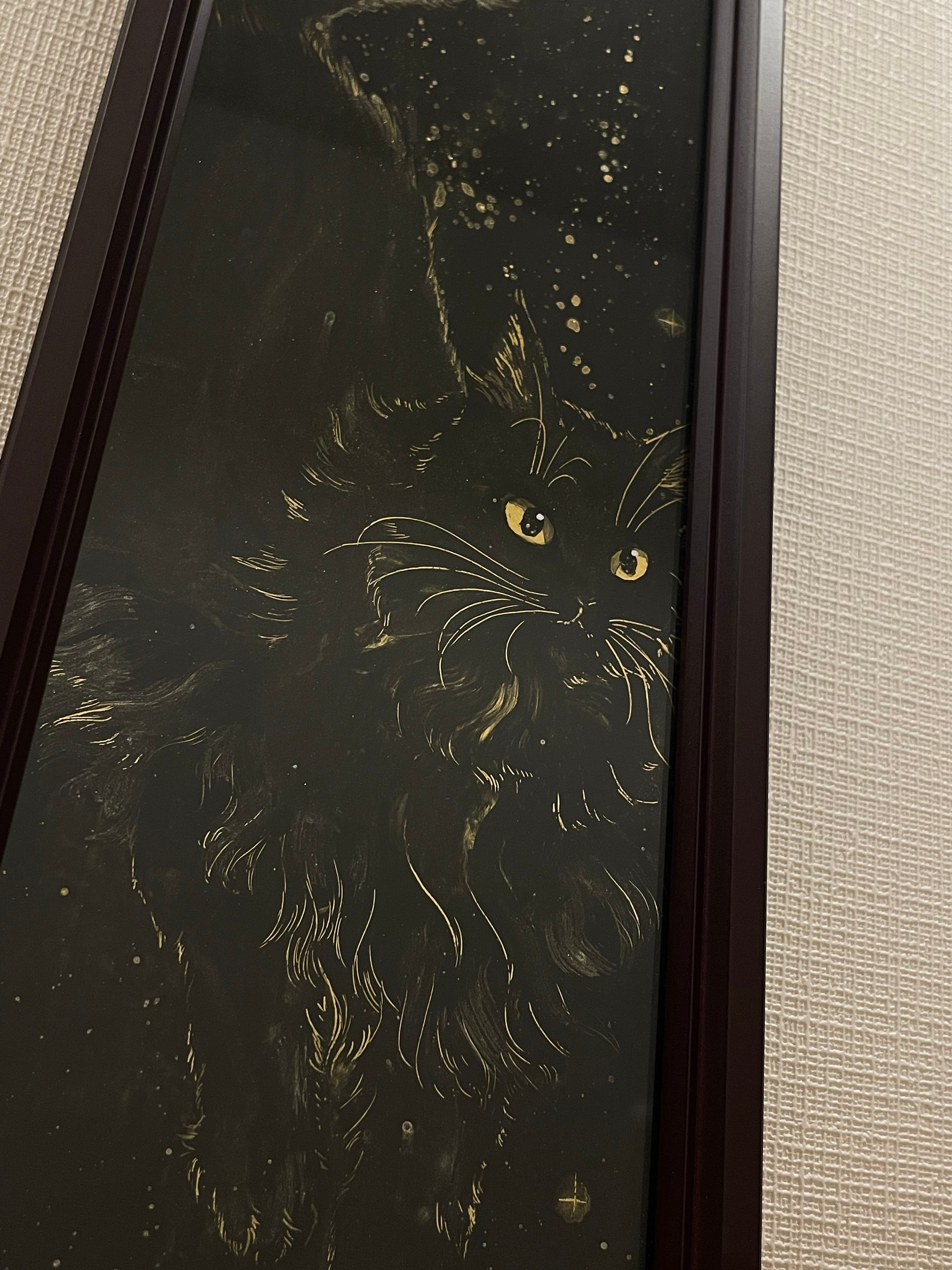 ゴールドシリーズと言われている金色の紙に黒の絵の具でを描く Natsuki Sumitani さんの