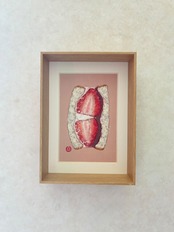 「いちごあんサンドひとつ」日本画(原画) 【2025.10.15-19】 日本画家 大森亜矢子 香川初個展 「おいしい秋、みつけた!」