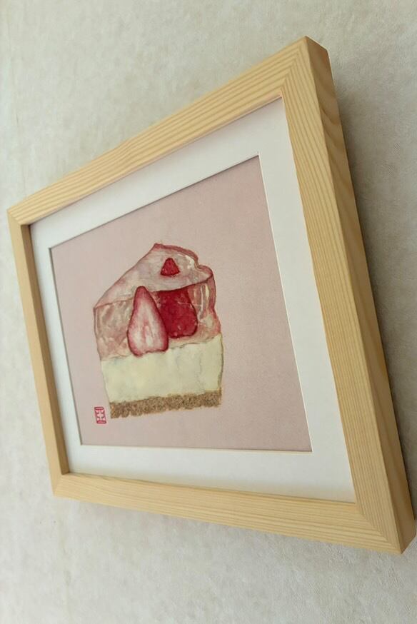 「二層のいちごレアチーズケーキひとつ」日本画(原画) 【2025.10.15-19】 日本画家 大森亜矢子 香川初個展 「おいしい秋、みつけた!」