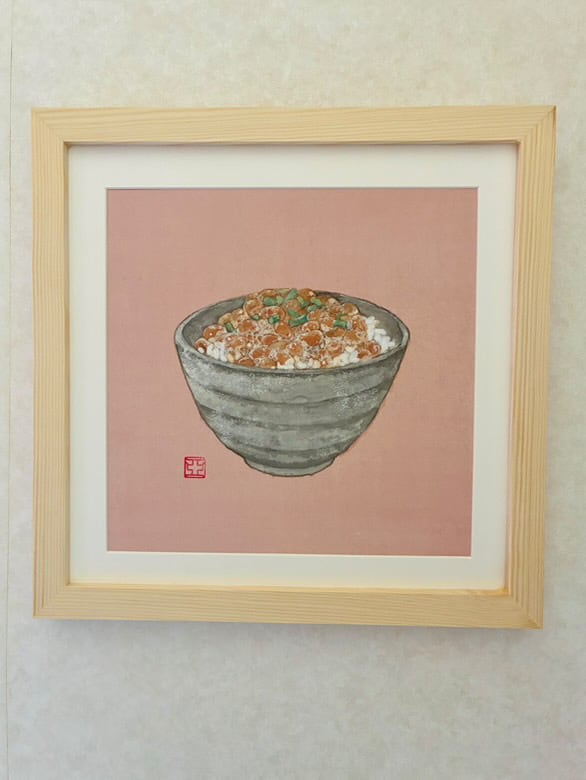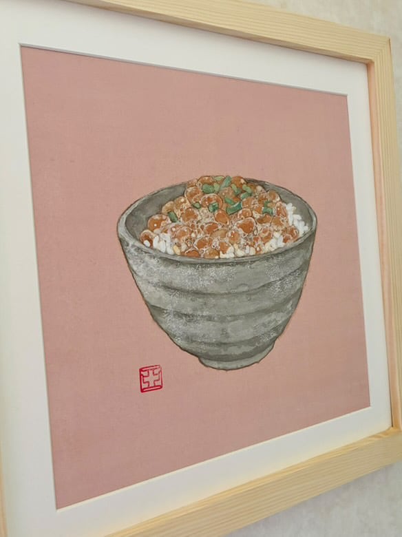 「納豆ごはんひとつ」日本画(原画) 【2025.10.15-19】 日本画家 大森亜矢子 香川初個展 「おいしい秋、みつけた!」