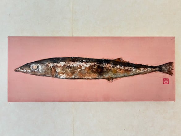 「さんまの塩焼きひとつ」日本画(原画) 【2025.10.15-19】 日本画家 大森亜矢子 香川初個展 「おいしい秋、みつけた!」