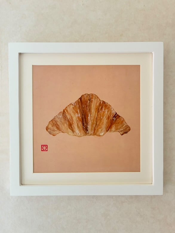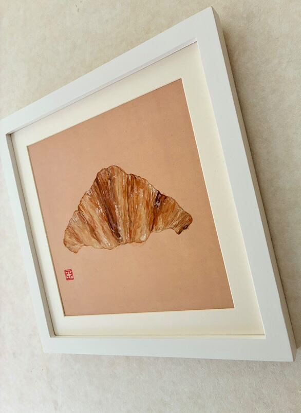 「クロワッサンひとつ」日本画(原画) 【2025.10.15-19】 日本画家 大森亜矢子 香川初個展 「おいしい秋、みつけた!」