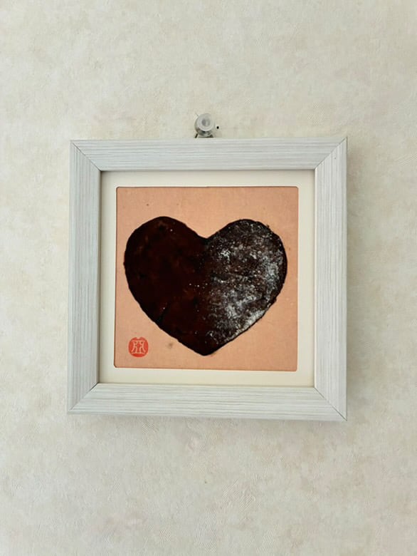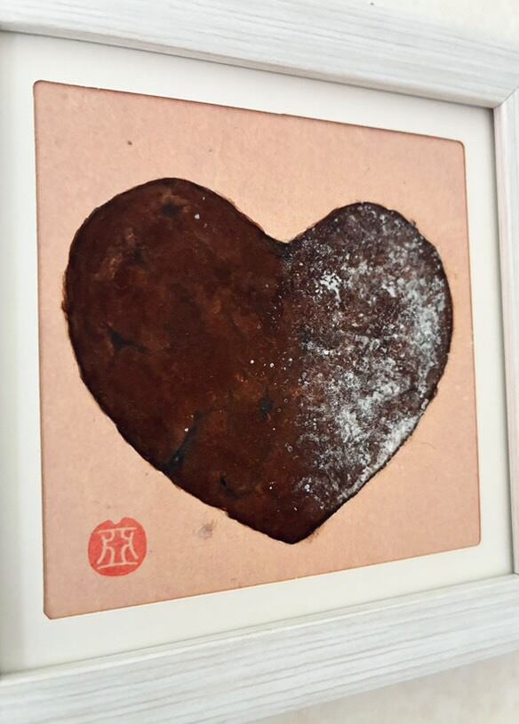 「ハートのガトーショコラひとつ」日本画(原画) 【2025.10.15-19】 日本画家 大森亜矢子 香川初個展 「おいしい秋、みつけた!」