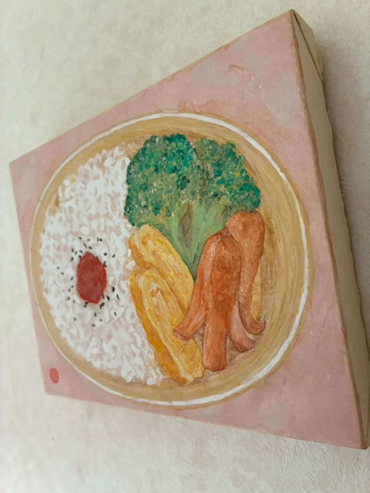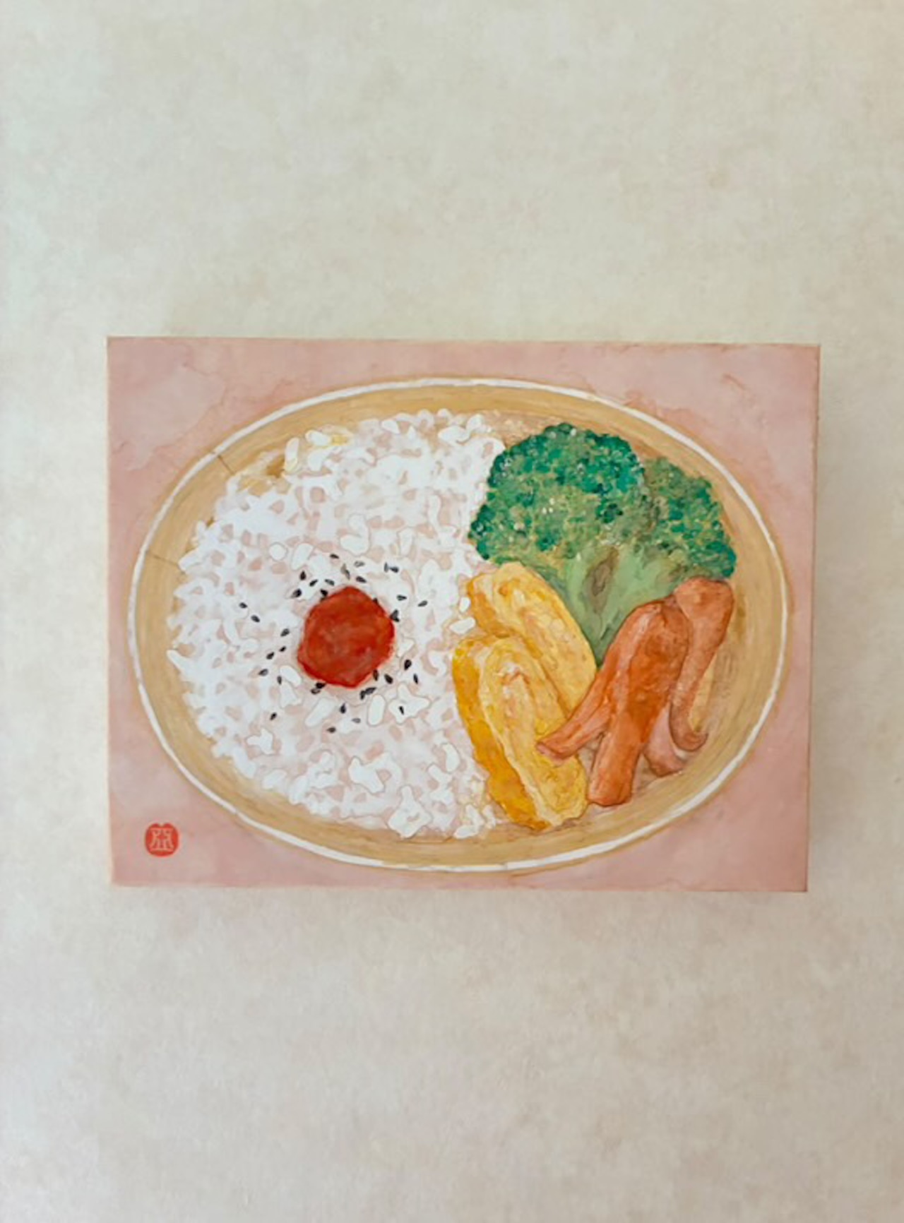 オーソドックス・お弁当!描くために、まず卵焼きを焼いた思い出があります(笑)お腹がすいて困りました。