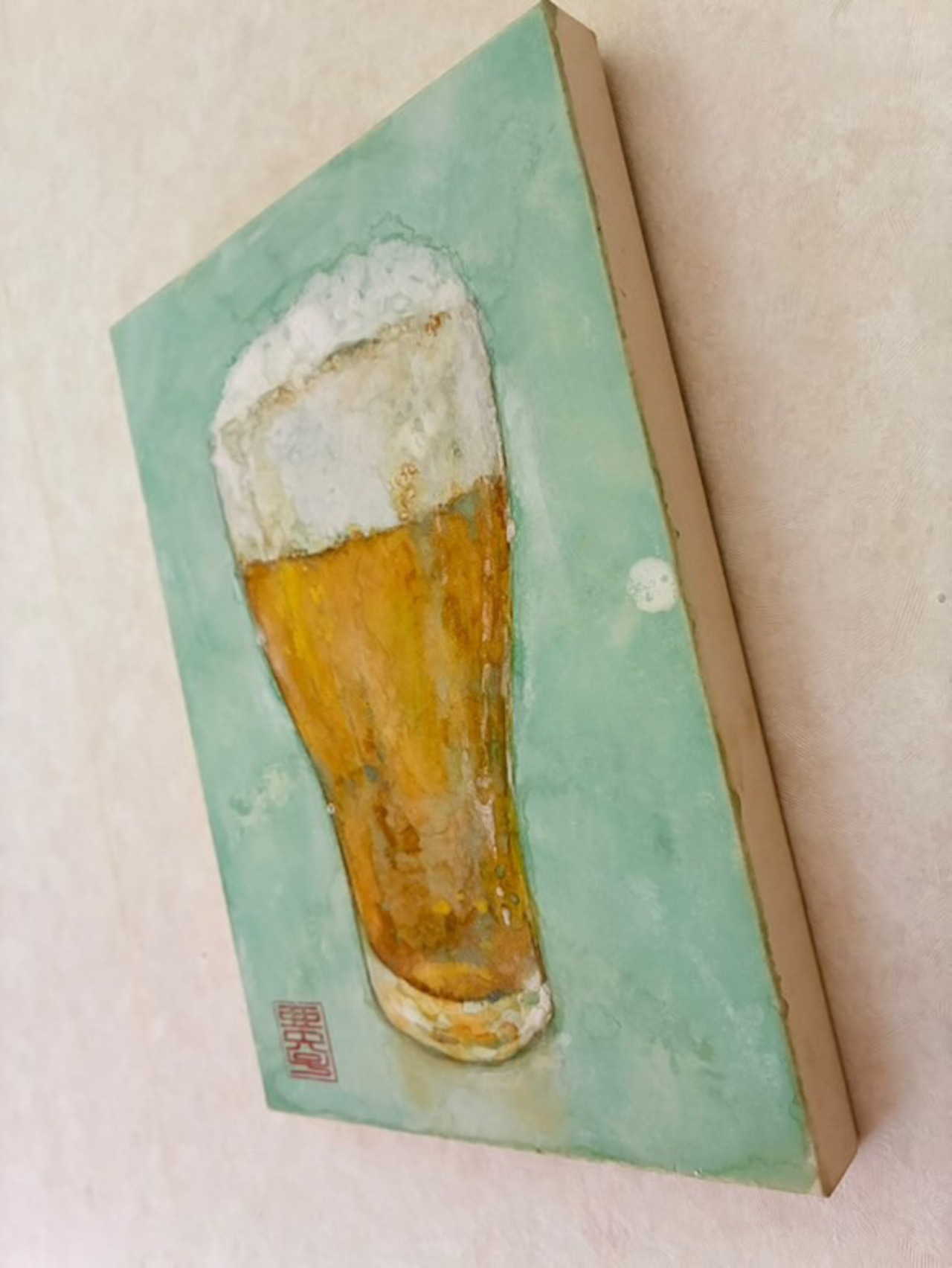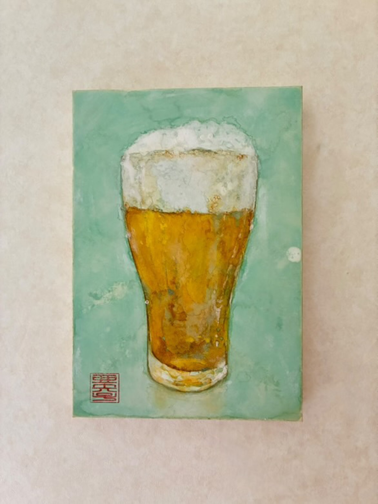 「生ビールひとつ!」日本画(原画) 【2025.10.15-19】 日本画家 大森亜矢子 香川初個展 「おいしい秋、みつけた!」
