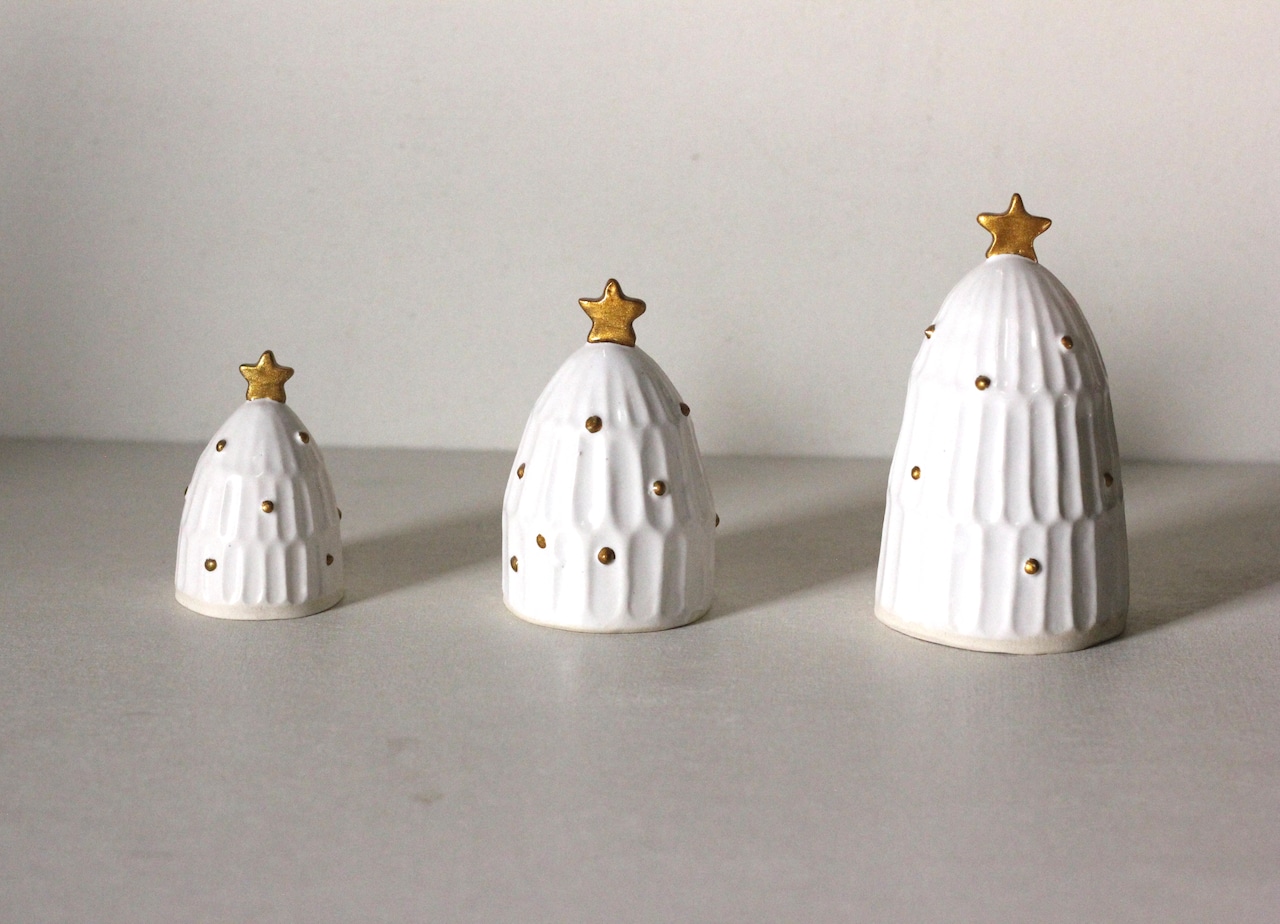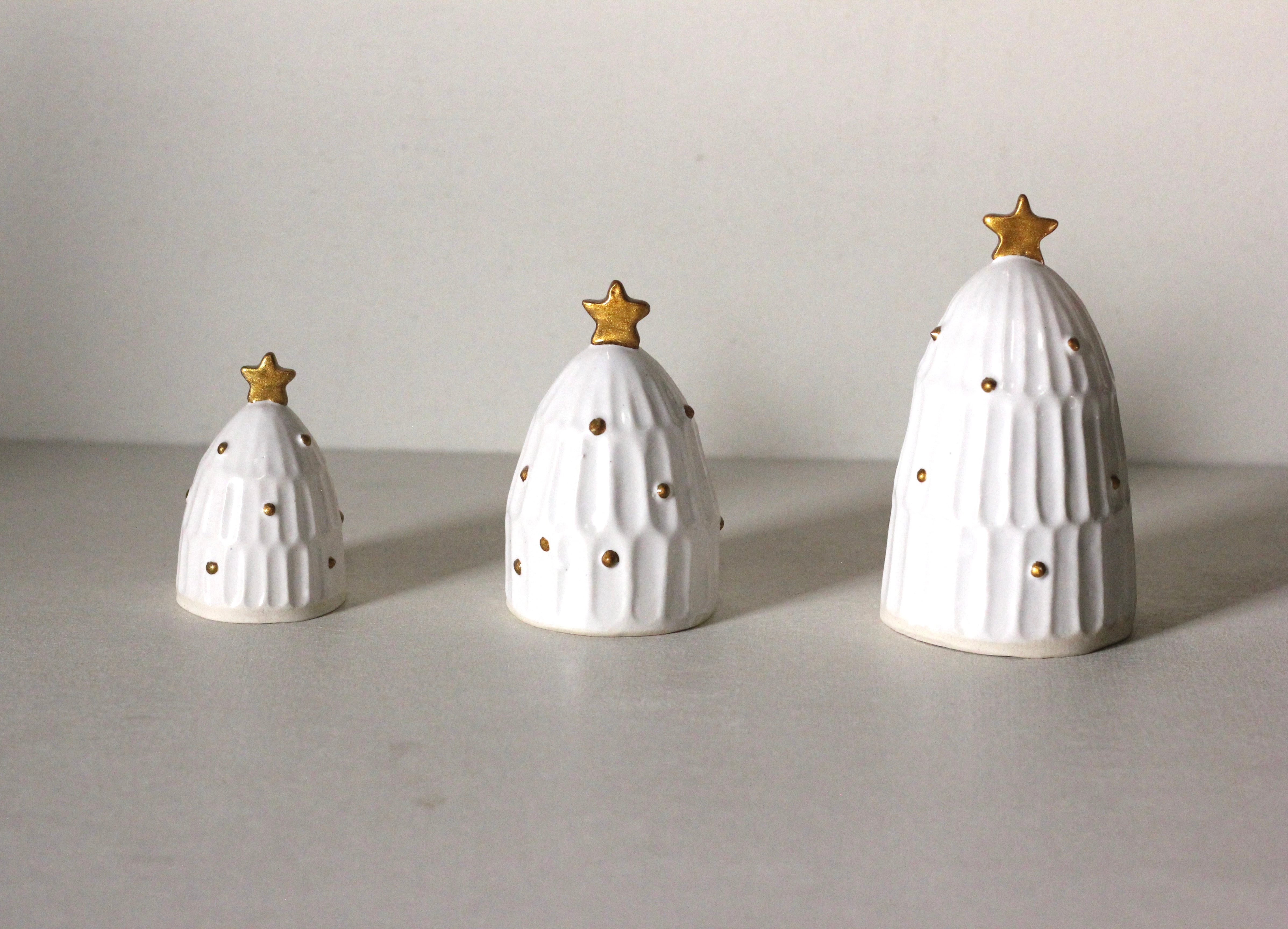 陶器のクリスマスツリー ホワイト 小 【2025.11.06-11.09】ニシクミ個展「大地と冬の妖精たち」