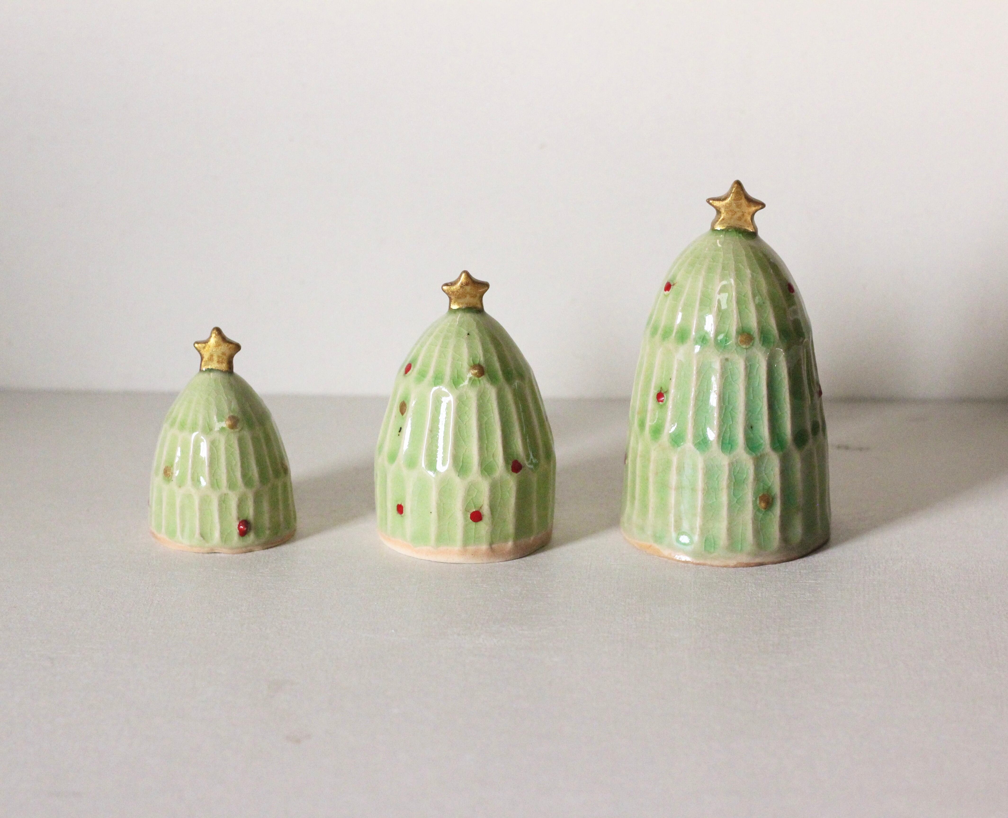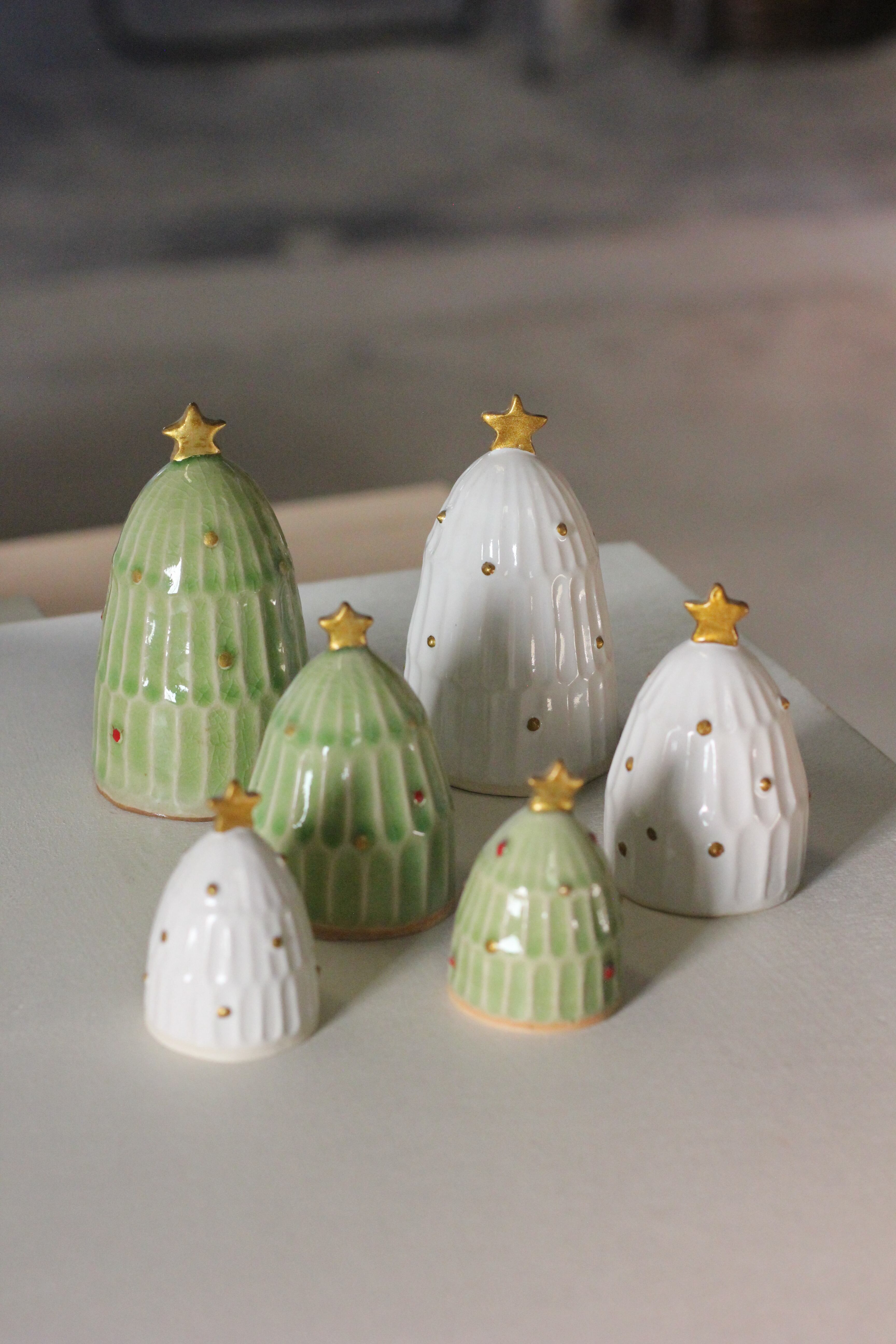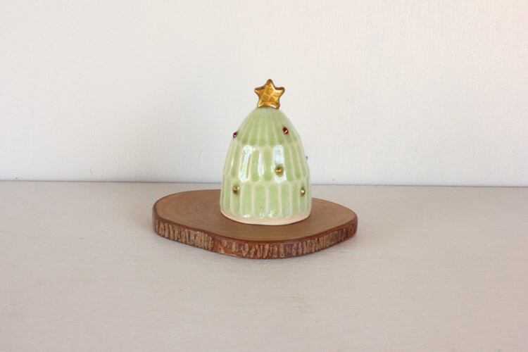 陶器のクリスマスツリー グリーン 小 【2025.11.06-11.09】ニシクミ個展「大地と冬の妖精たち」