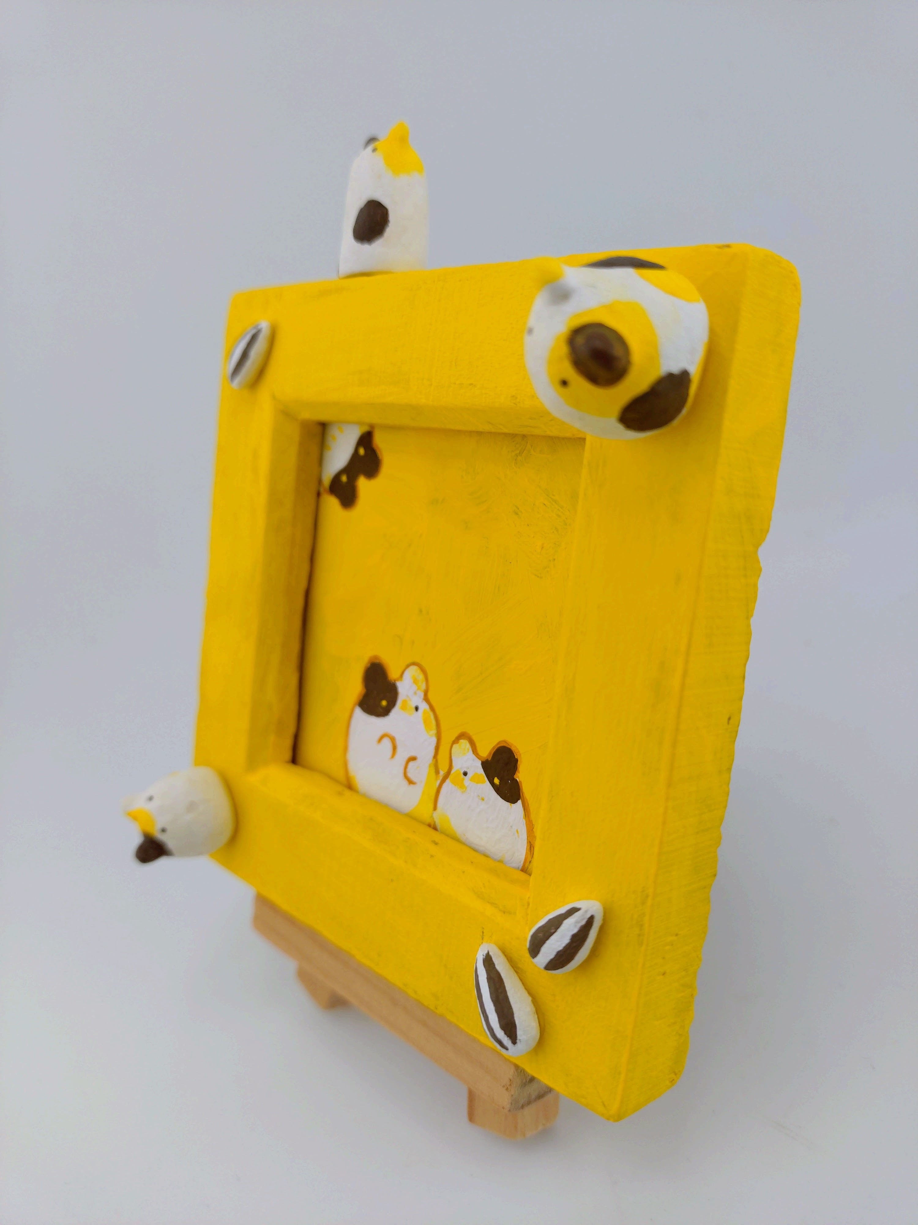 イエローとブラウンの優しい配色で描かれた可愛いハムスターたち。