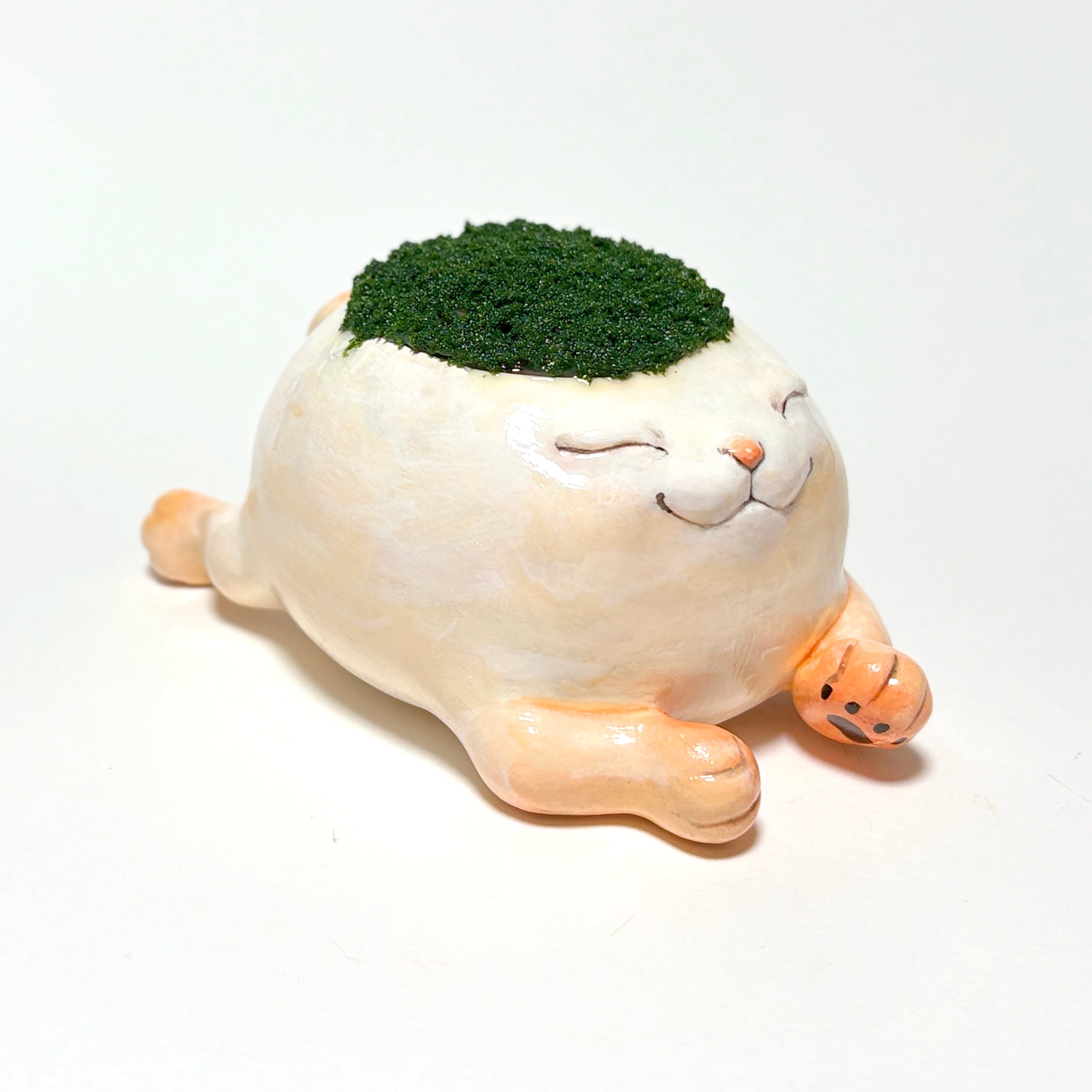 ネコの鉢植えでねこっぱち。自走したり、お食事したり、自由な生き物……鉢です。今はスヤスヤ眠っています。