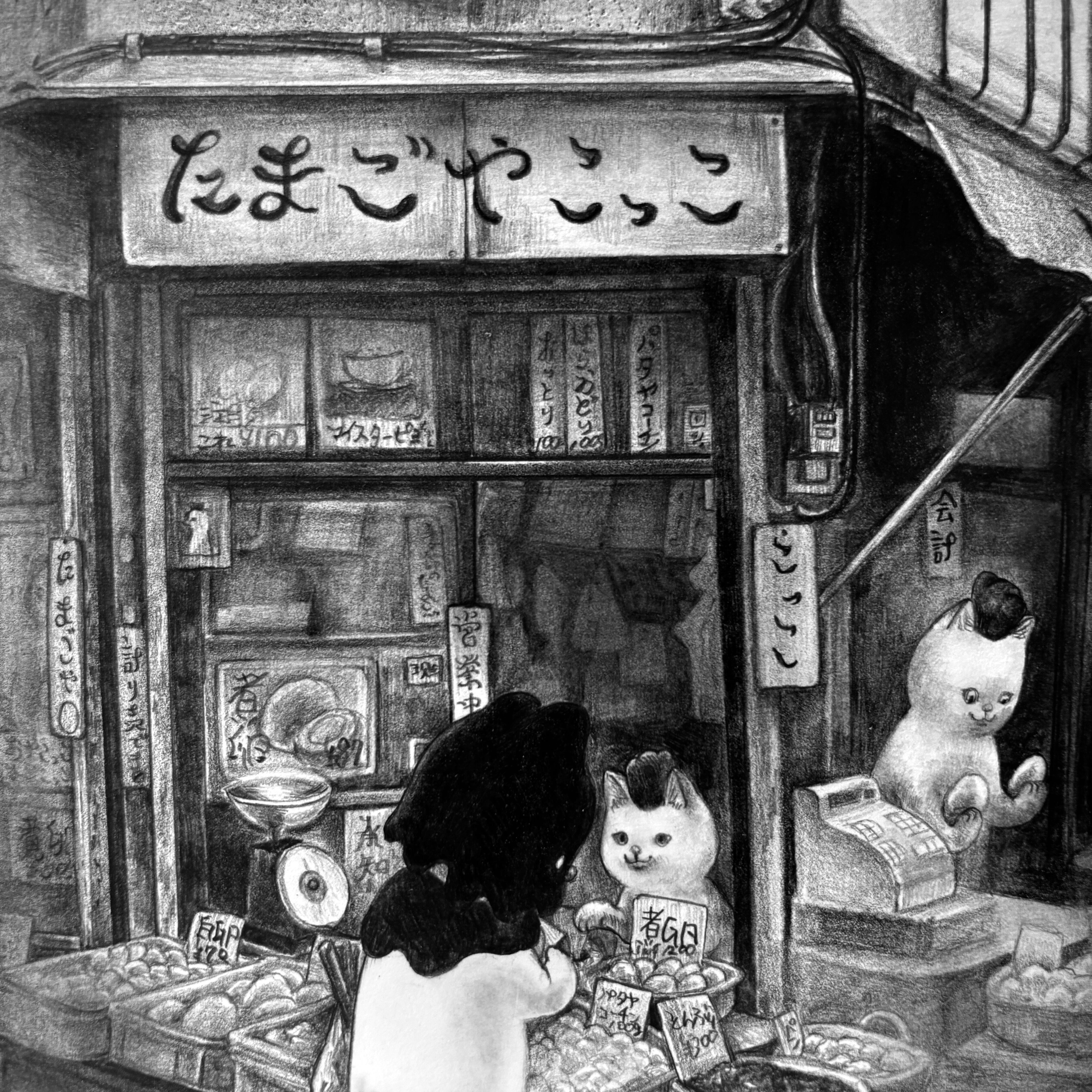 ここはたまごやこっこ。ここはこっこ。こっこ帽を被った猫が「いらっしゃいませ!こっこ~!」とあいさつしてくれます。