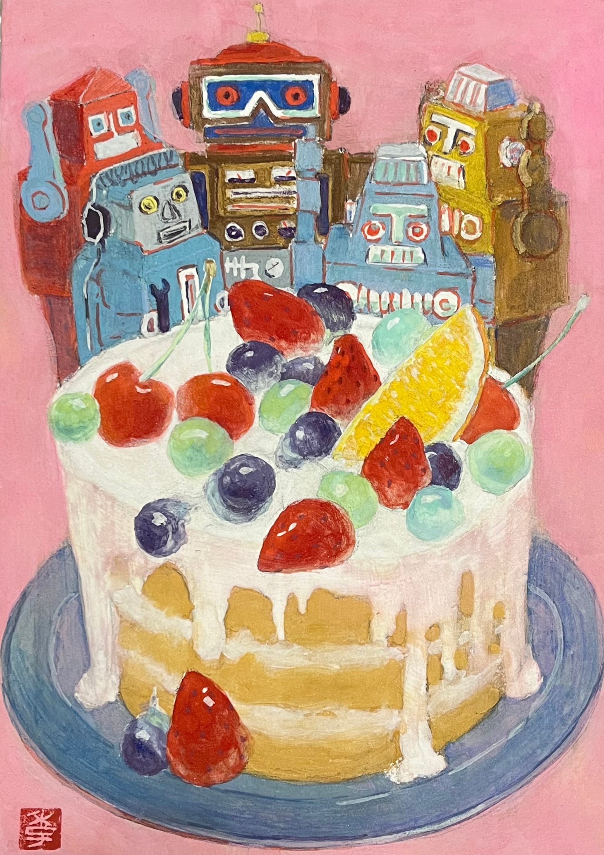 柔らかな筆致と鮮やかな色彩で構成された作品群は、訪れる人の心にあたたかな光をもたらします。ケーキたちとの出会いを、お楽しみください。