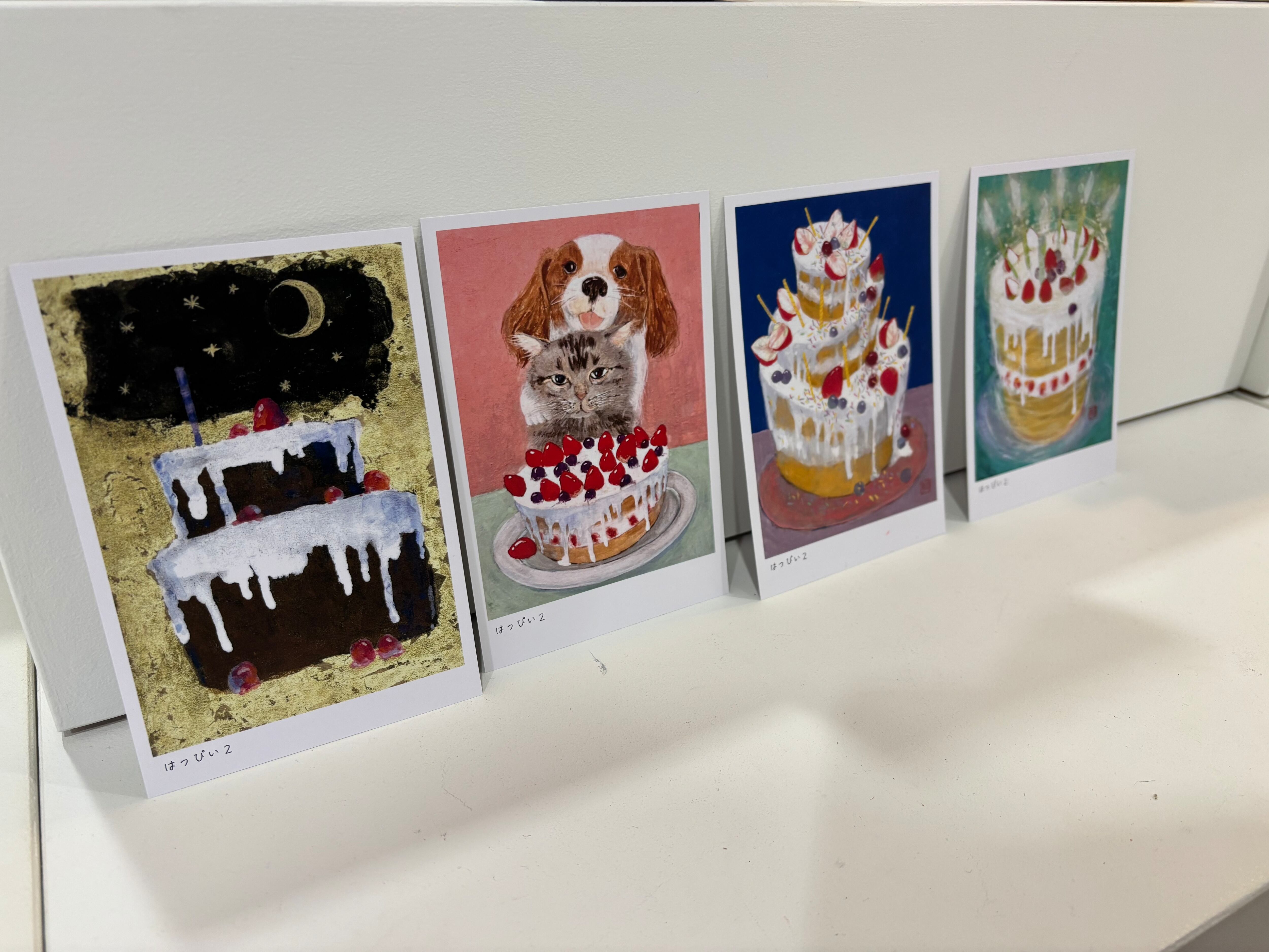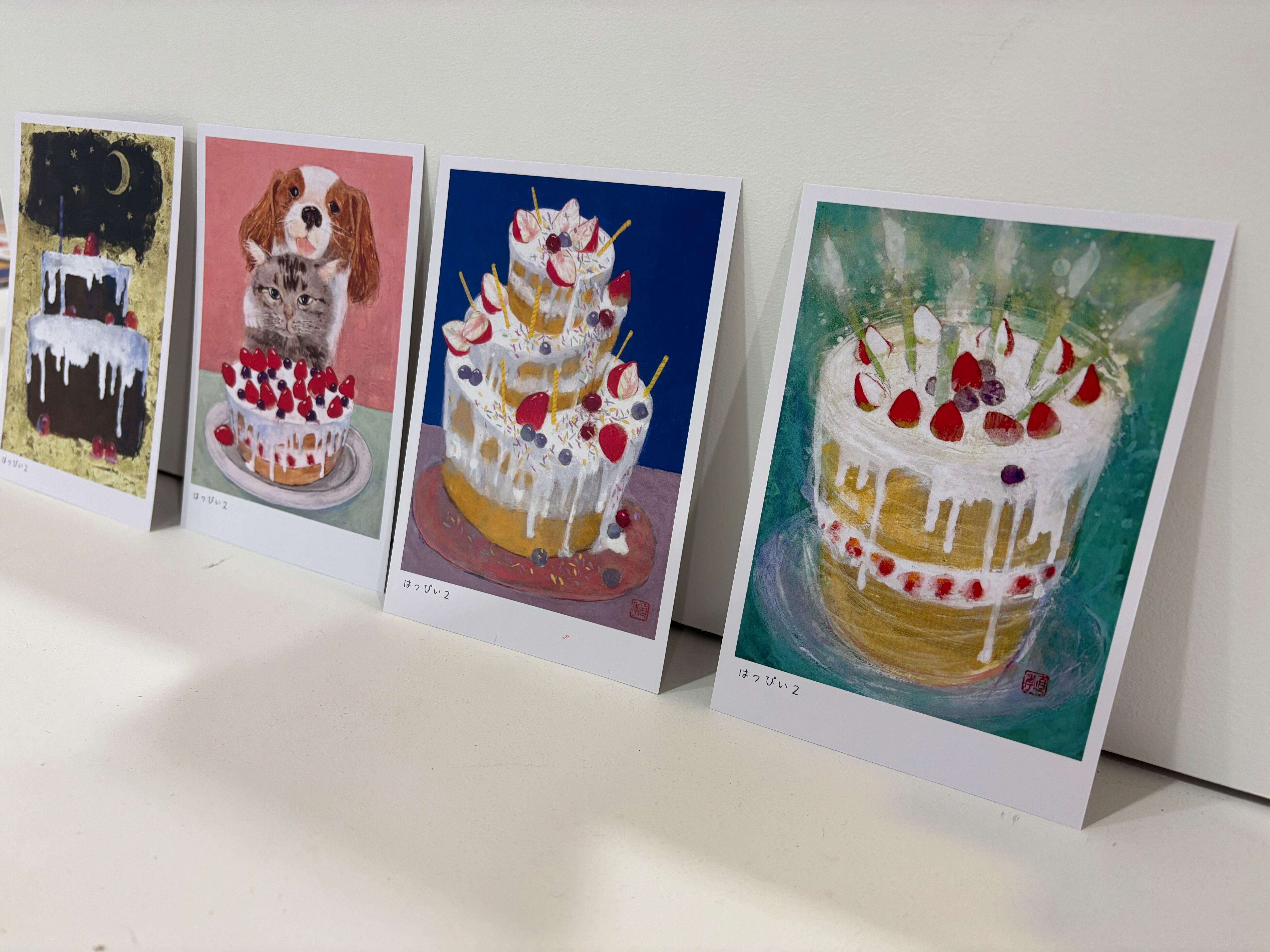 柔らかな筆致と鮮やかな色彩で構成された作品群は、訪れる人の心にあたたかな光をもたらします。ケーキたちとの出会いを、お楽しみください。