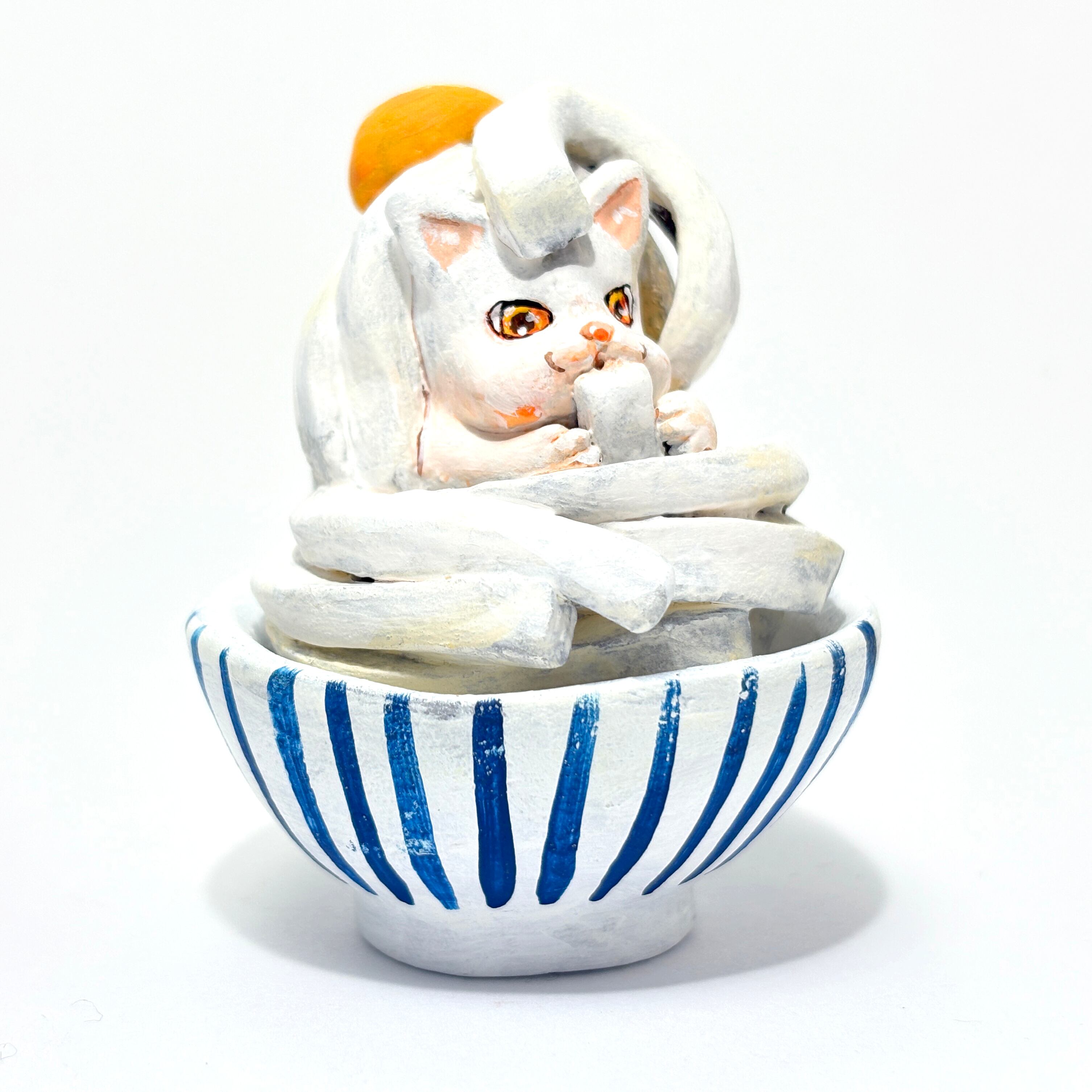 【2024.12.4-12.8】だんらんのじかん モサモサさん個展 38 うどんねこ(ストライプ鉢)