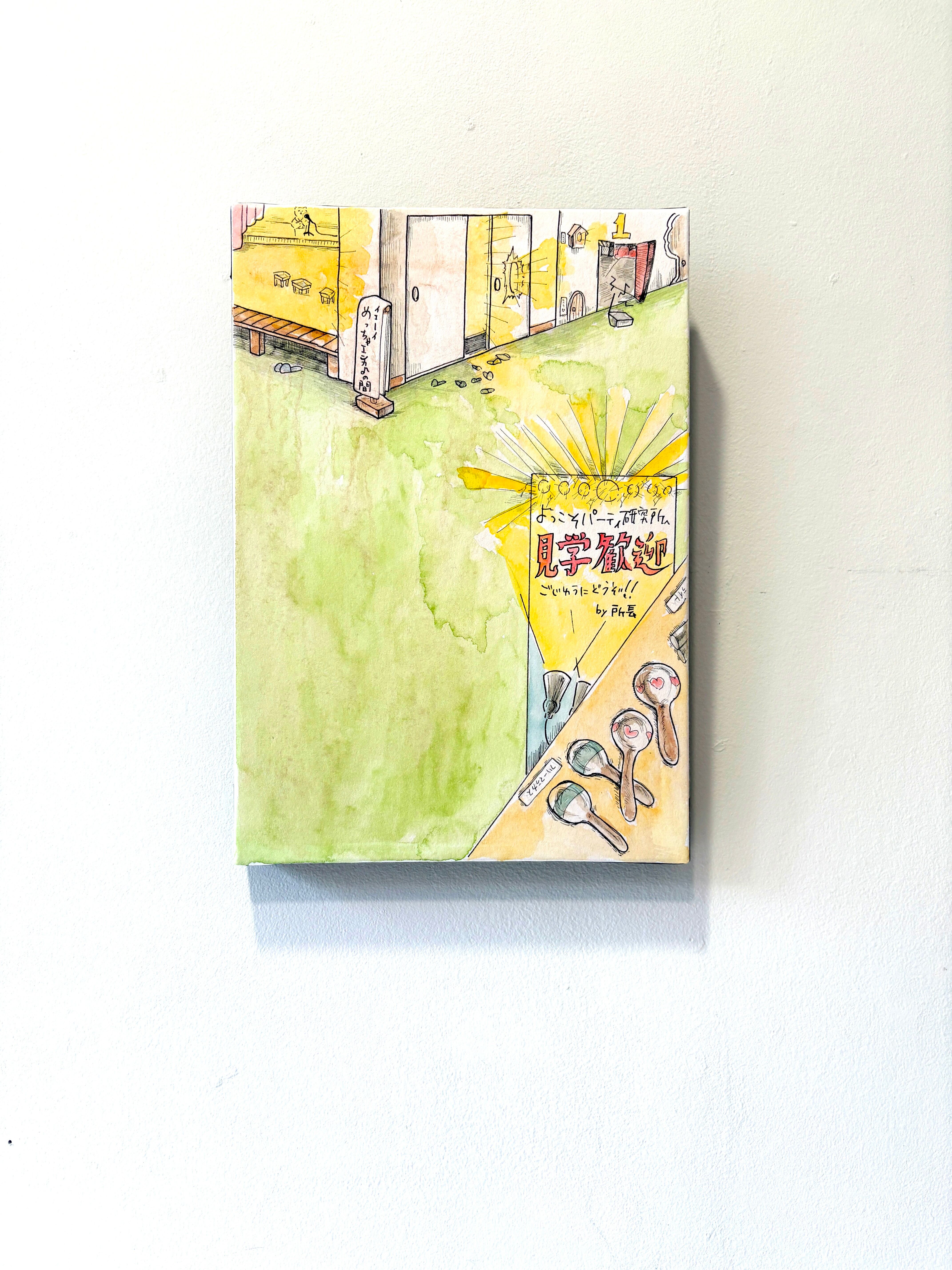 【素材】 木製パネル、画用紙、鉛筆、水彩絵の具、ペン