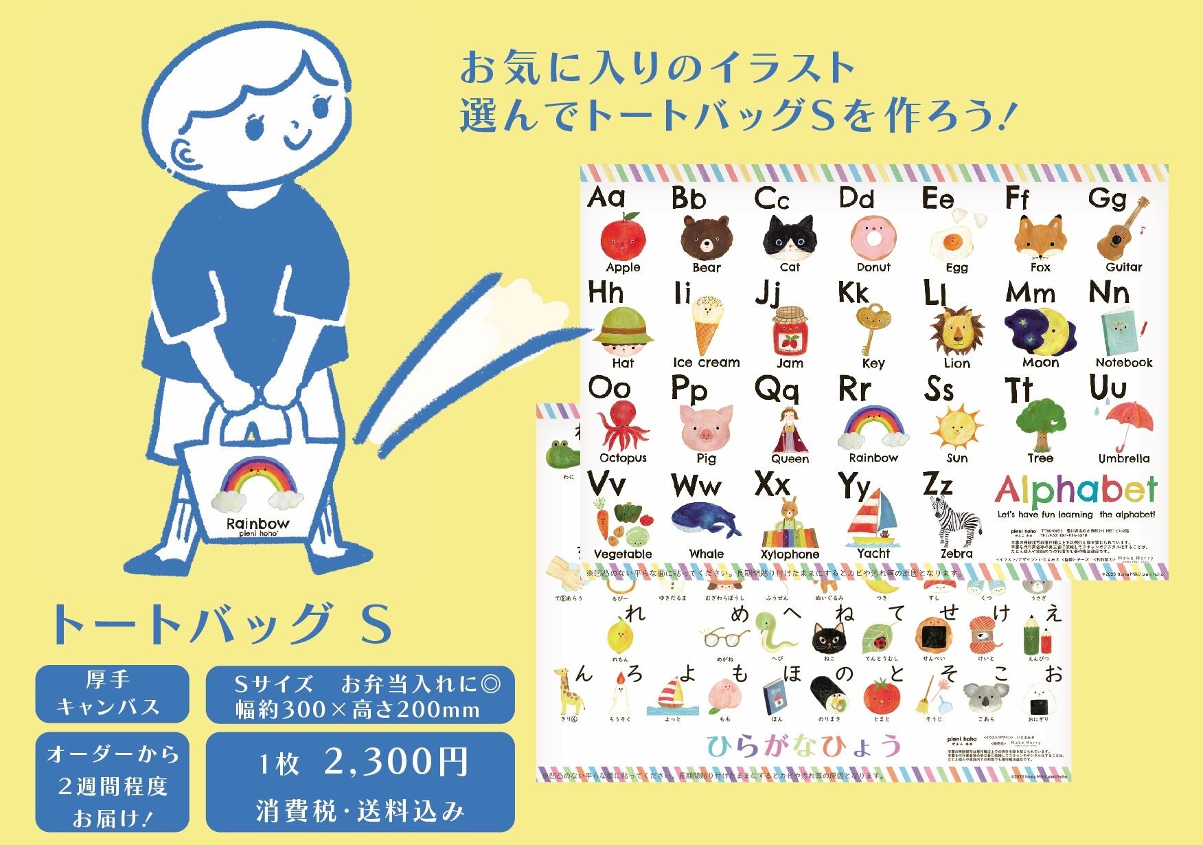 選んで作れる「アルファベット キャンバス トート Sサイズ(お弁当入れに◎)」オーダーページ