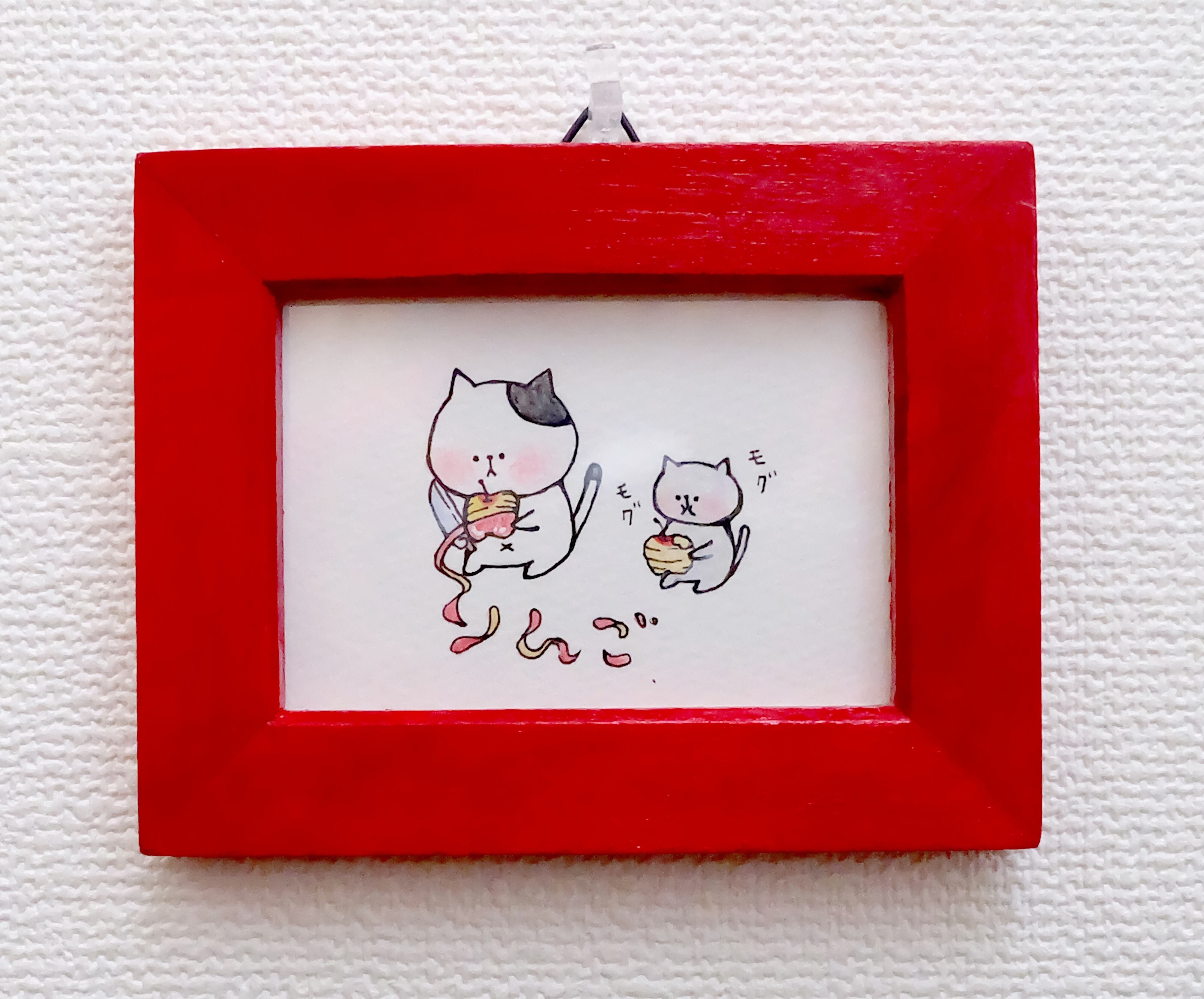 アクリル画、水彩画、デジタル画など色々な画材で描き、描き方も写実的な絵とゆるいオリジナルキャラクター「おこにゃん」と全く別の方が描いたのかと思わせるchiharuさん。
